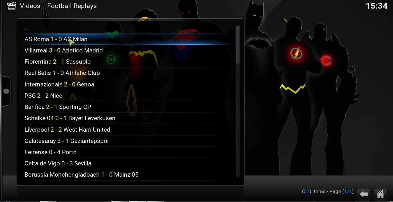 Football Replays video add-on telah dihasilkan oleh developer Xunity Talk. Addons ini hanya menyiarkan highlight, goal dan juga full match replay.
